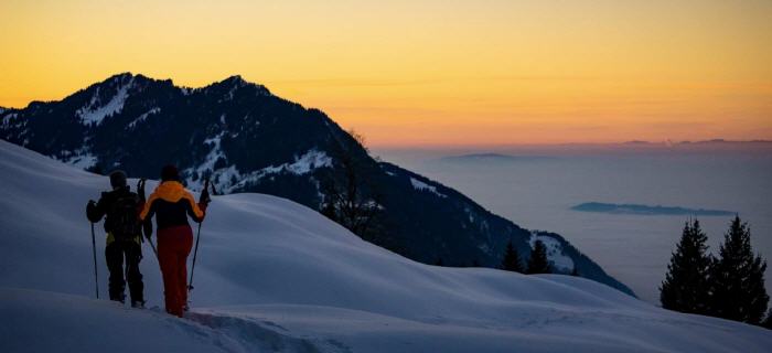 Tourenleiter, Schneeschuhe, Stirnlampen, Fondue, Glühwein, Alpentaxi