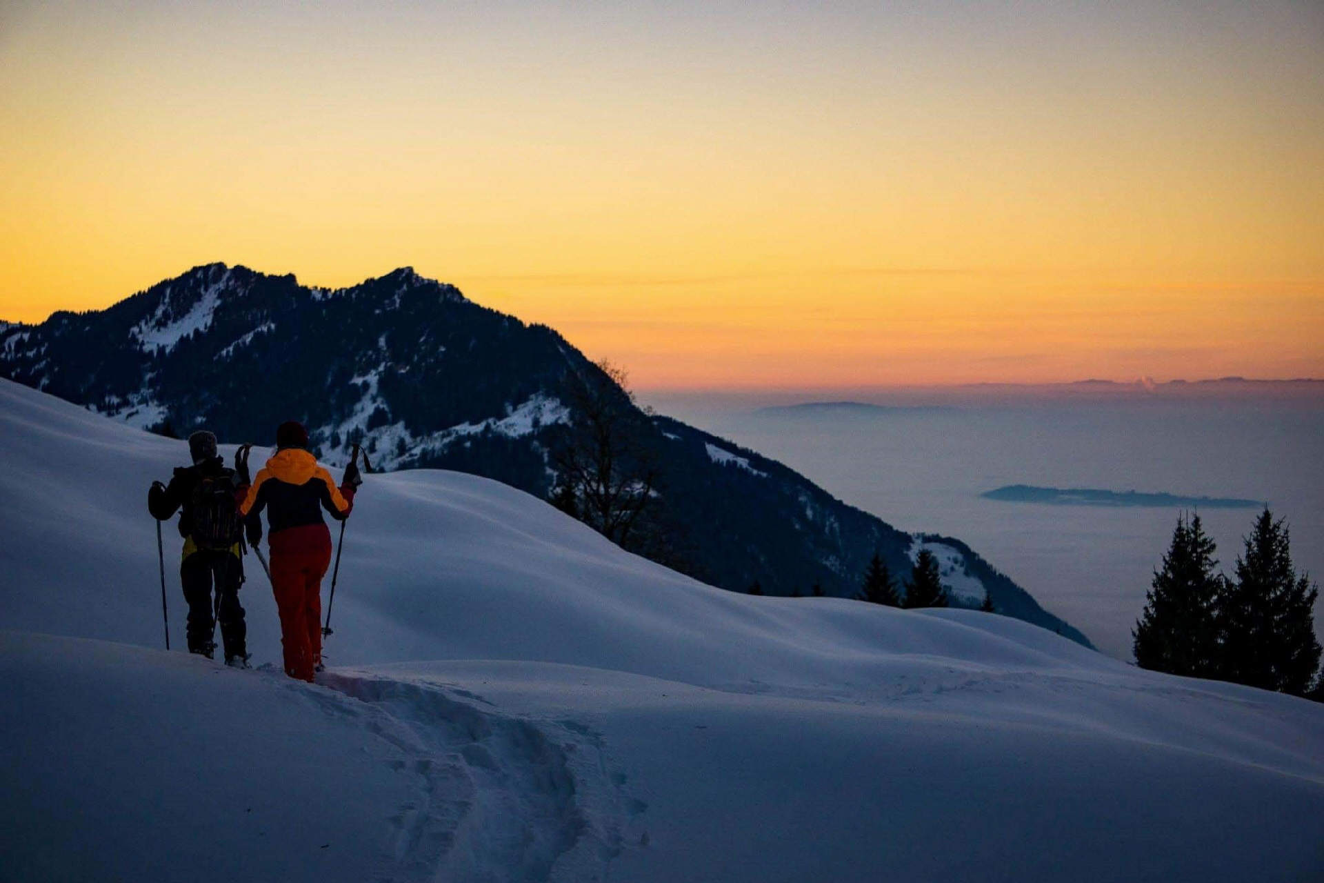 inkl. Fondue, Schneeschuhe, Stirnlampen, Glühwein am Lagerfeuer, 1 Bahnfahrt, Schlittenmiete, exkl. Mwst & Getränke